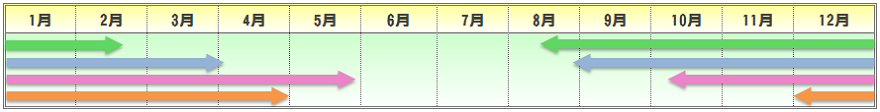 | 播種期 | 定植期 | 収穫期 | 出荷最盛期 |