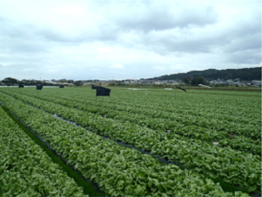 水田の後作なので、雨の影響を受けて一部定植が遅れた。 ・中上段:10月中旬定植、12月中旬収穫予定の圃場。 育苗期の天候不順により葉が薄く軟弱な苗も見受けられる。 ・中下段:9月下旬定植、11月下旬収穫予定。 一部、病気の発生が見受けられる。 ・下段:9月下旬定植、11月下旬収穫予定。 11月出荷予定の圃場においてマル印のような症状が散見される。 | ||||||