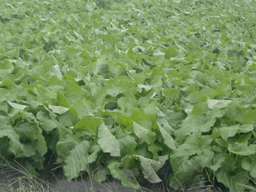 ・時期:出荷最盛期。 ・上2枚 台風以外でも日照不足が著しい。 葉折れをカバーしようと新葉が生えてきたことで圃場の見た目は一見良いが、その影響で本体が養分不足傾向。 ・下2枚 下部変形が目立ち生育は著しく不良。 | ||||||