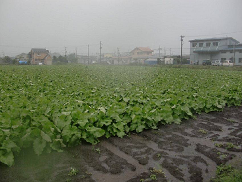 ・時期:生育期。 ・若干干ばつ傾向であったが解消された。 ・生育及び出荷は平年並みの見込みだが、今回の台風による冠水の影響が今後懸念される。 | ||||||