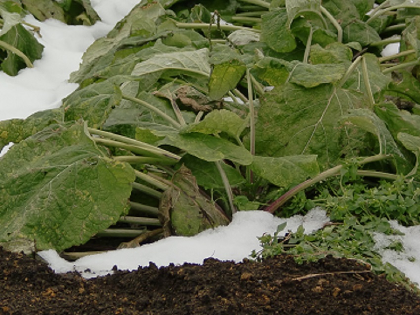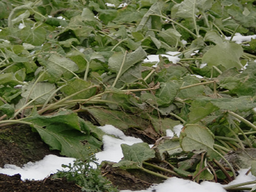 ・時期:出荷終盤期。 ・上2枚 天候不順で降雪が早い。 ・下2枚 下部変形が目立ち生育は著しく不良。 | ||||||