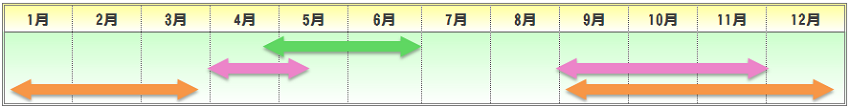 | 播種期 | 定植期 | 収穫期 | 出荷最盛期 |