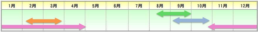 | 播種期 | 定植期 | 収穫期 | 出荷最盛期 |