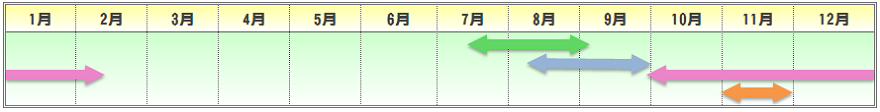 | 播種期 | 定植期 | 収穫期 | 出荷最盛期 |