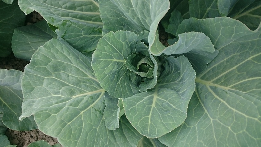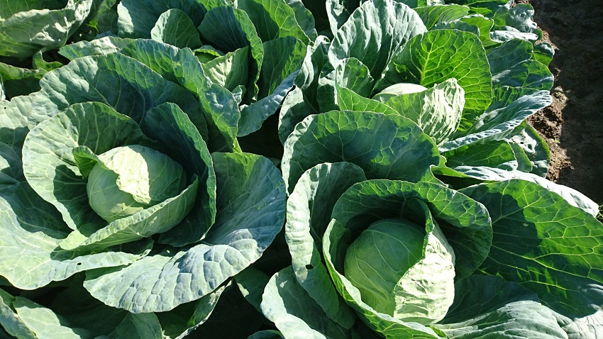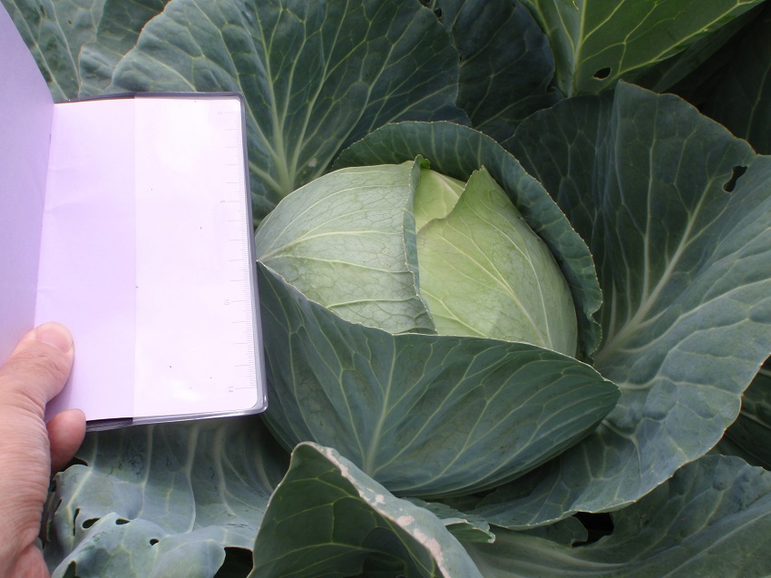 中上段:集荷場に持ち込まれた状態。 中下段:下段のキャベツの1カ月前の状態。 下 段:収穫間近のキャベツ。 | ||||||