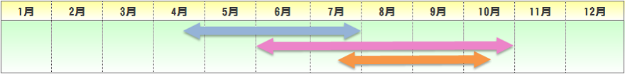 | 播種期 | 定植期 | 収穫期 | 出荷最盛期 |