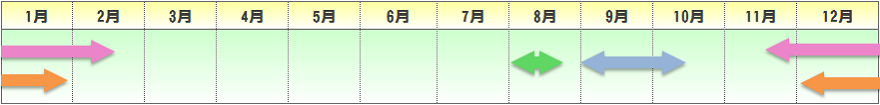 | 播種期 | 定植期 | 収穫期 | 出荷最盛期 |