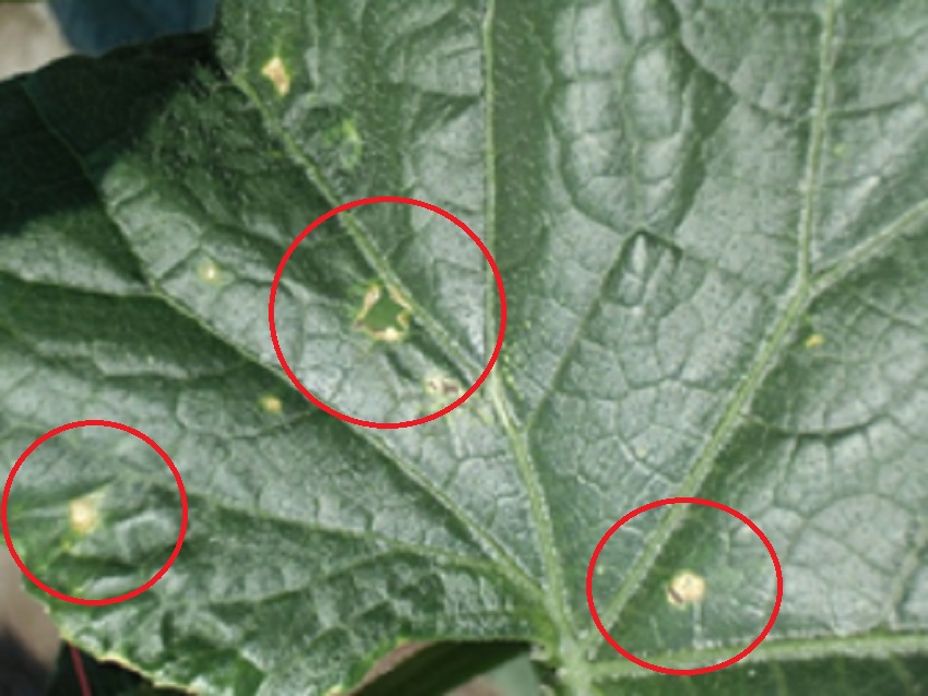 ・斑点細菌病、べと病、炭疽病、褐斑病と病気が混在し、一部防除困難となる。