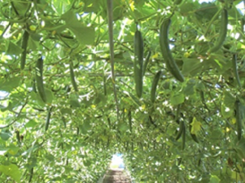 ・生育の停滞で根張りが弱く、葉色が抜け黄色っぽくなるほ場が見受けられた。 ・葉の大きさが平年より二回りほど小さい状況で、巻つるが短いものが多い。 ・根張り及び樹勢の弱さから花芽が例年より多く、 付け過ぎに注意を呼びかけている。 ・梅雨に入り天候が回復し、生育も回復傾向にあるが 葉色が濃いほ場が散見される。 ・6月22日に強風があり、一部ほ場で芯折れ・葉にキズ傷みが発生した。