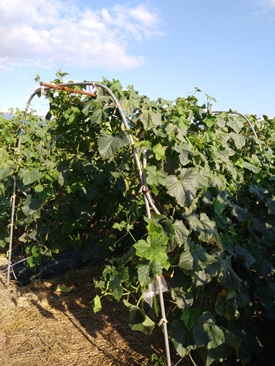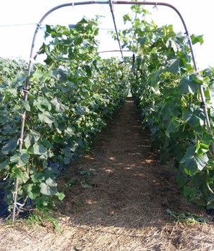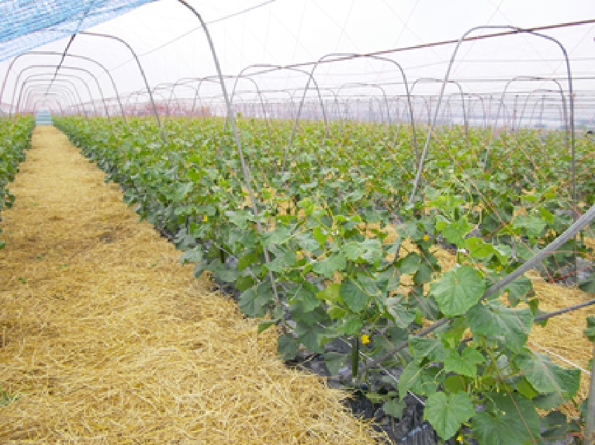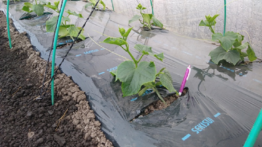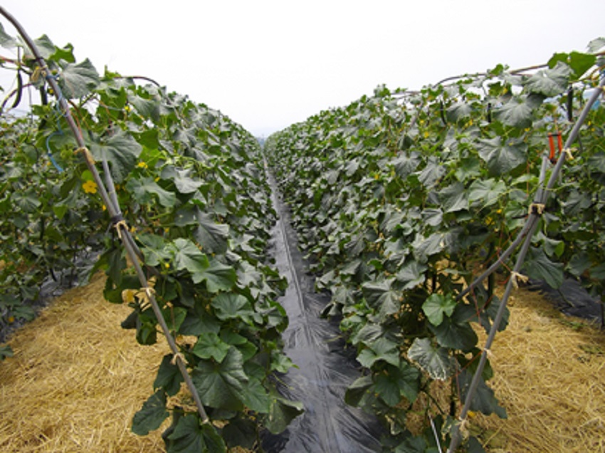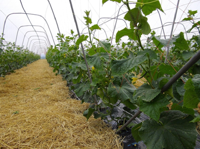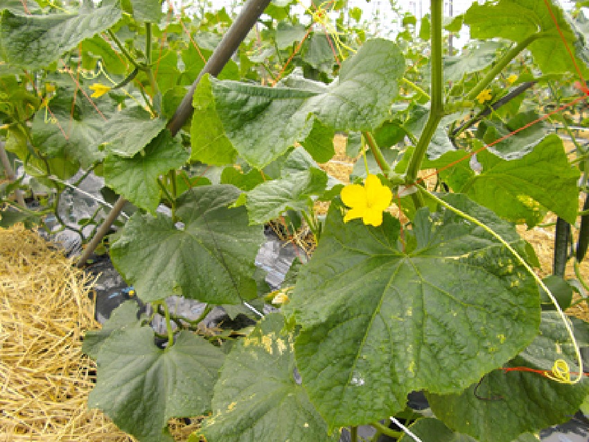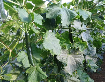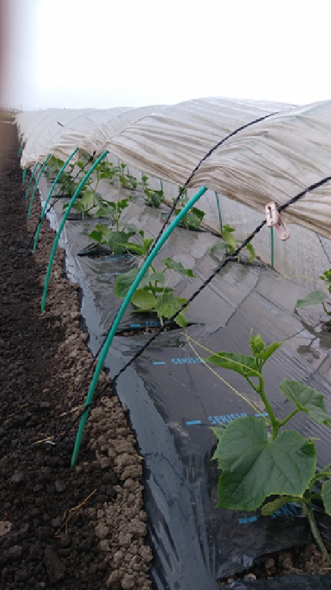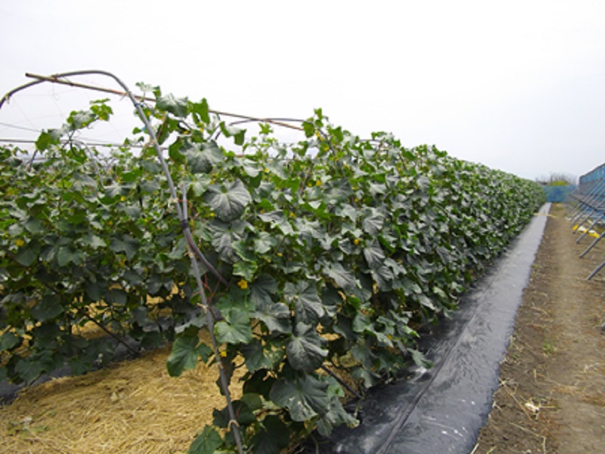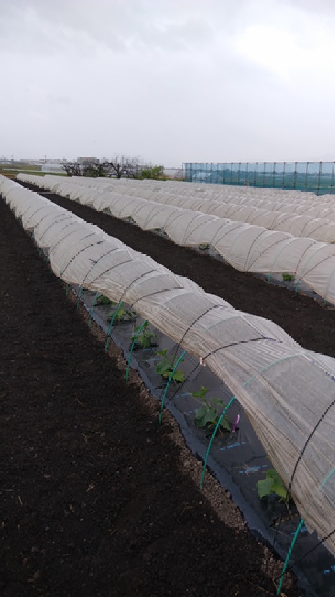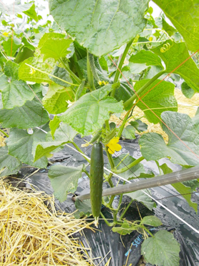 ・定植期とつる上げ時の夜間の低温で、生育は遅れ気味であったが、