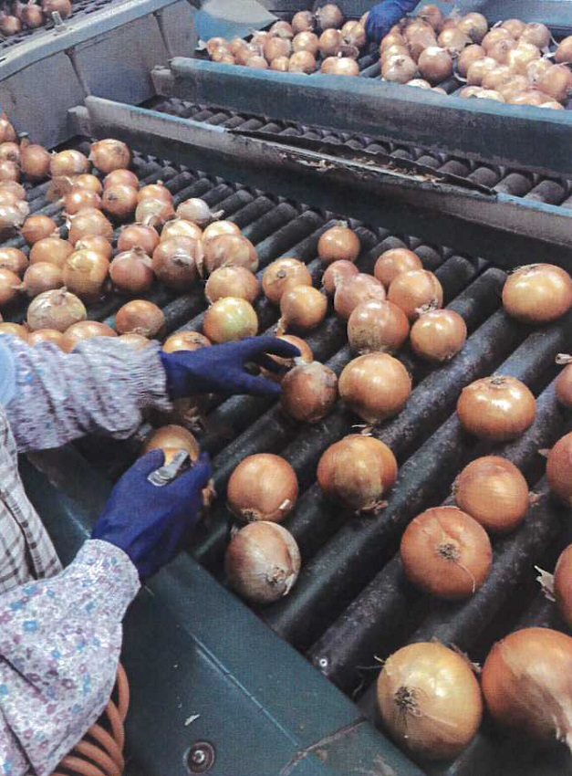 ・たまねぎの選果状況。