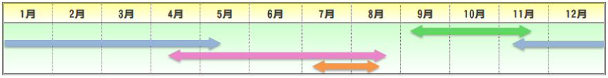 | 播種期 | 定植期 | 収穫期 | 出荷最盛期 |