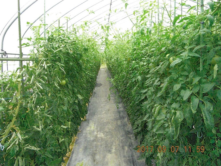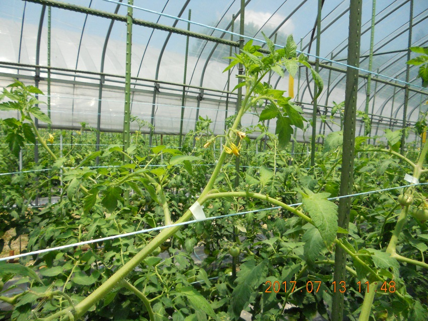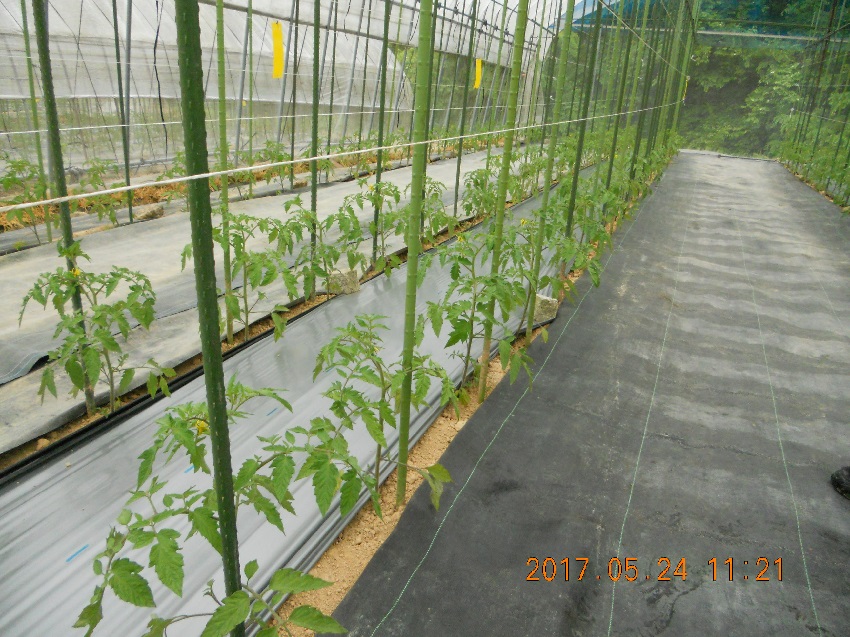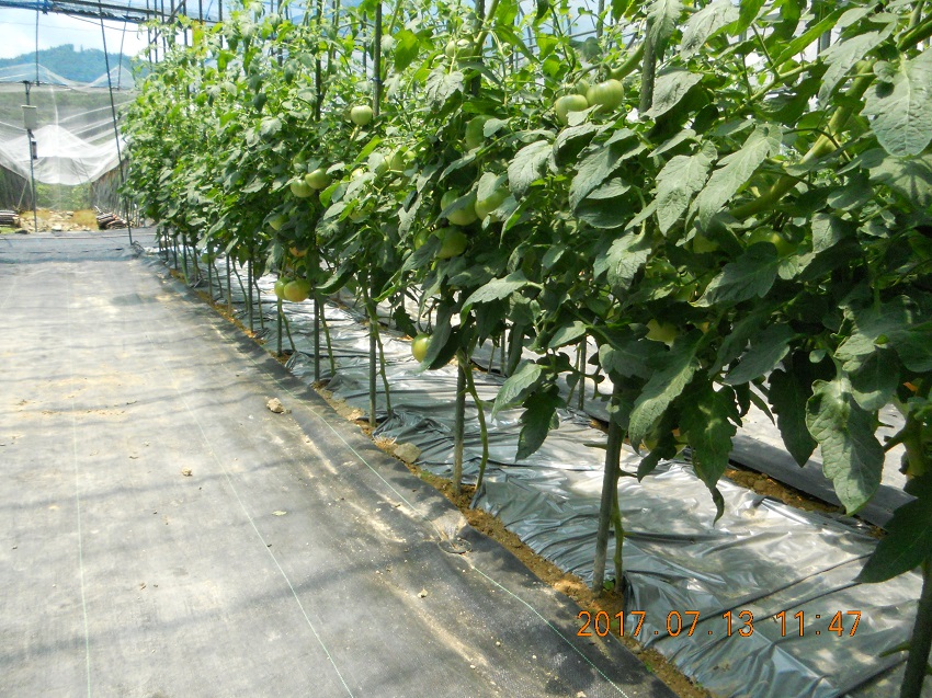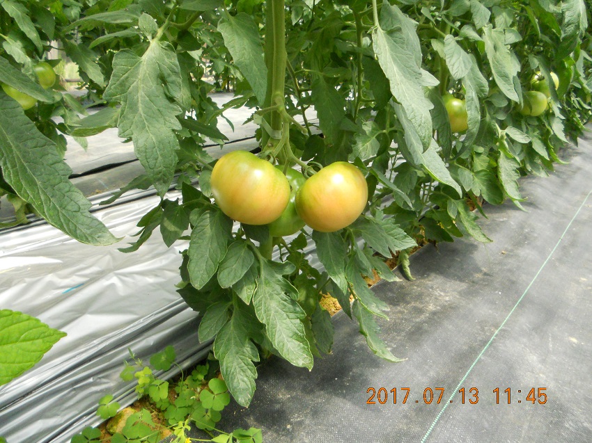 ・4段、5段の着果が悪い樹がある。 ・生長点付近が日照不足の影響でやや軟弱傾向。 ・全体的にほぼ順調。