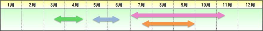 | 播種期 | 定植期 | 収穫期 | 出荷最盛期 |