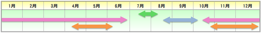 | 播種期 | 定植期 | 収穫期 | 出荷最盛期 |