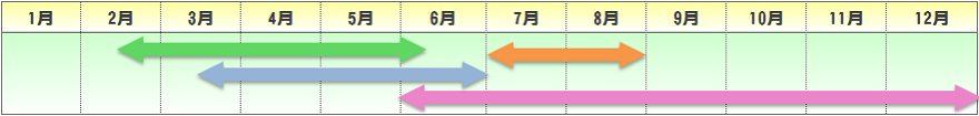| 播種期 | 定植期 | 収穫期 | 出荷最盛期 |