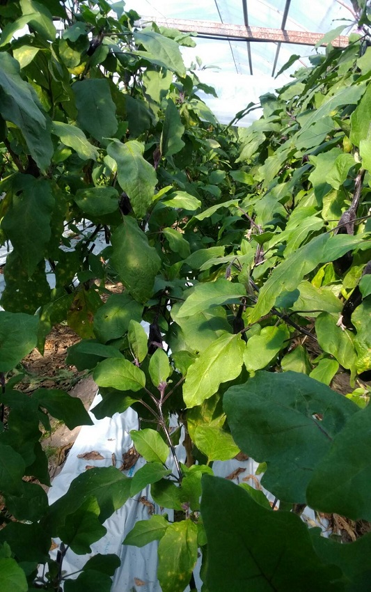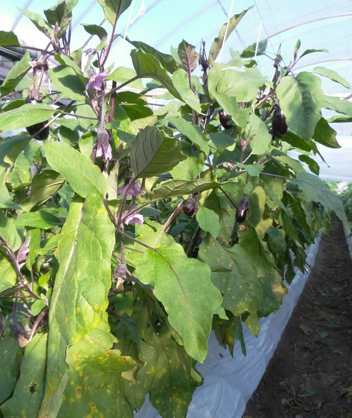・黒枯病が少し発生しているが、防除薬剤散布の効果で抑えられている。