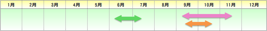 | 播種期 | 定植期 | 収穫期 | 出荷最盛期 |