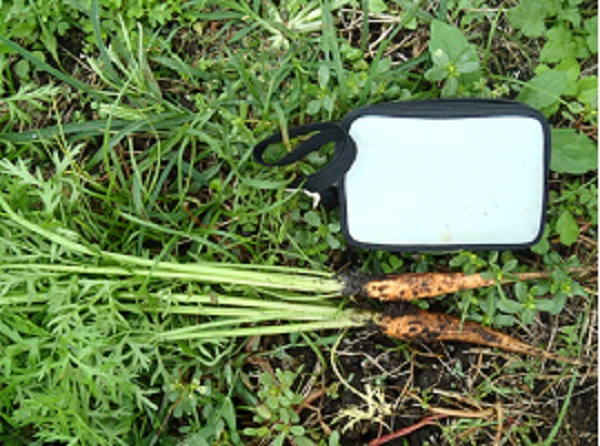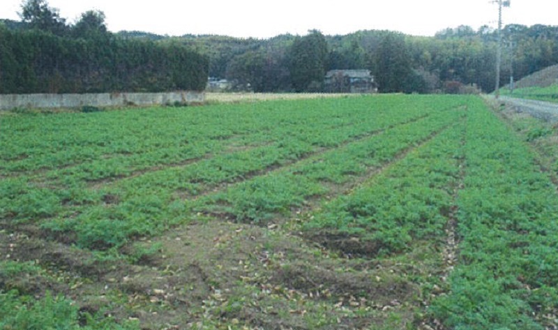 全般的に葉が茂りすぎていて、地面に日が当たらない。 2枚目:9月上旬定植、収穫中のほ場。 比較的日のあたる端の畝のものは長く、真ん中は短い傾向にある。 3枚目:9月下旬定植、2月下旬収穫見込みのほ場。 11月中旬以降、気温は例年と比べて平均1.6℃低い。 4枚目:9月下旬定植、2月下旬収穫見込みのほ場。 10月から長期にわたり天候不順のため生育は停滞気味。 | ||||||