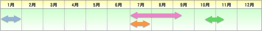 | 播種期 | 定植期 | 収穫期 | 出荷最盛期 |