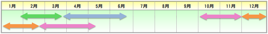 | 播種期 | 定植期 | 収穫期 | 出荷最盛期 |