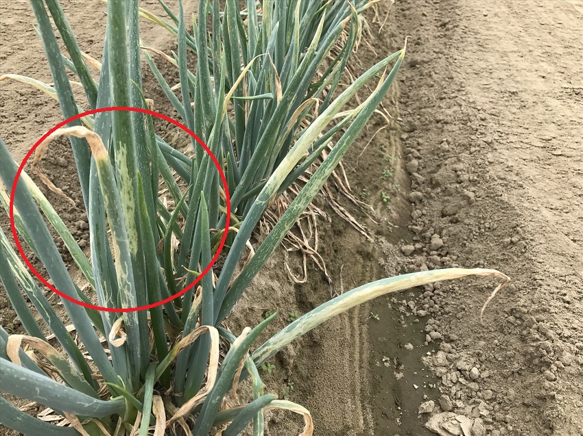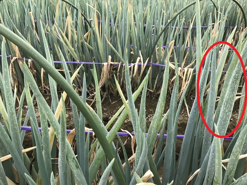 ・軟腐病・白絹病・ネギハモグリバエ・ネギアザミウマが発生している。