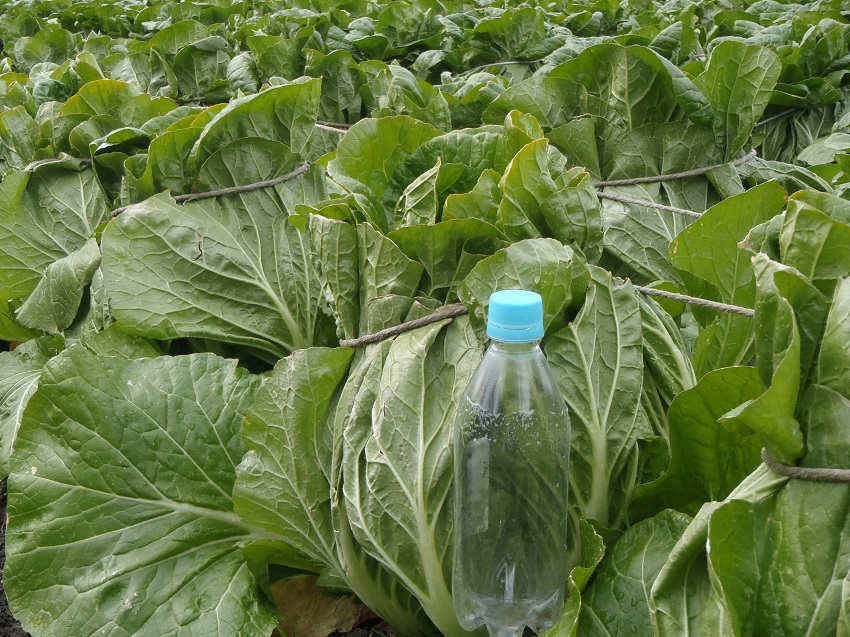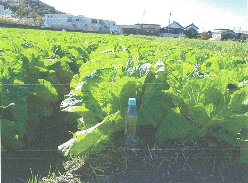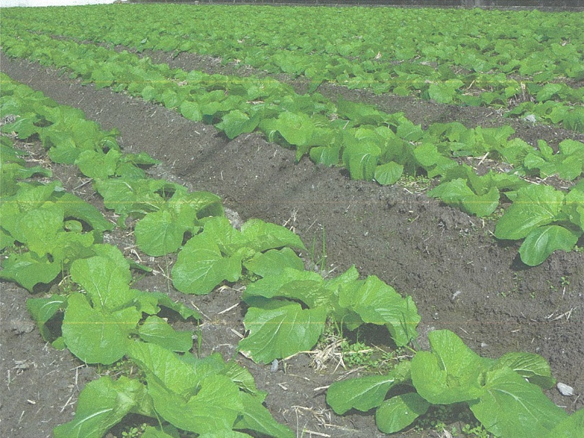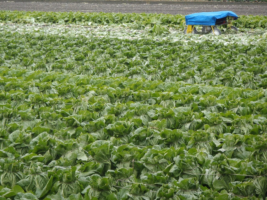 冠水・湿害の被害を受けたことにより、今後も軟腐病の発生が懸念される。 ・暴風により根が傷んでいるため、肥料の吸収が悪く小玉傾向。 1、2枚目:生育期、12月に収穫開始予定。 3、4枚目:生育期、11月末から収穫が始まる。 5枚目 :10月の台風で冠水した園地。 軟腐病が発生し、収穫できないため産地廃棄となる。 | ||||||