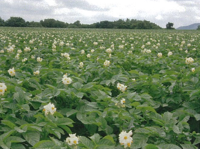 ・生育は早めに進んでいたが、6月に入るとやや遅れ気味となった。 ・早生種の「とうや」を早く植付けしたほ場では開花している。 ・「男しゃく」は雨で遅れていた培土が終了し、前進栽培ほ場では開花し始め、 7月上旬に本格的な開花期を迎える見込み。