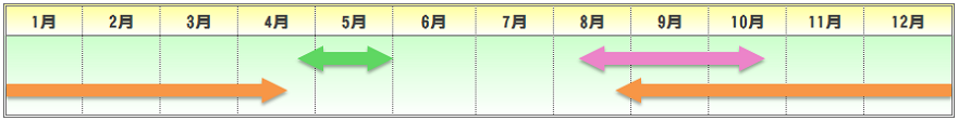| 播種期 | 定植期 | 収穫期 | 出荷最盛期 |