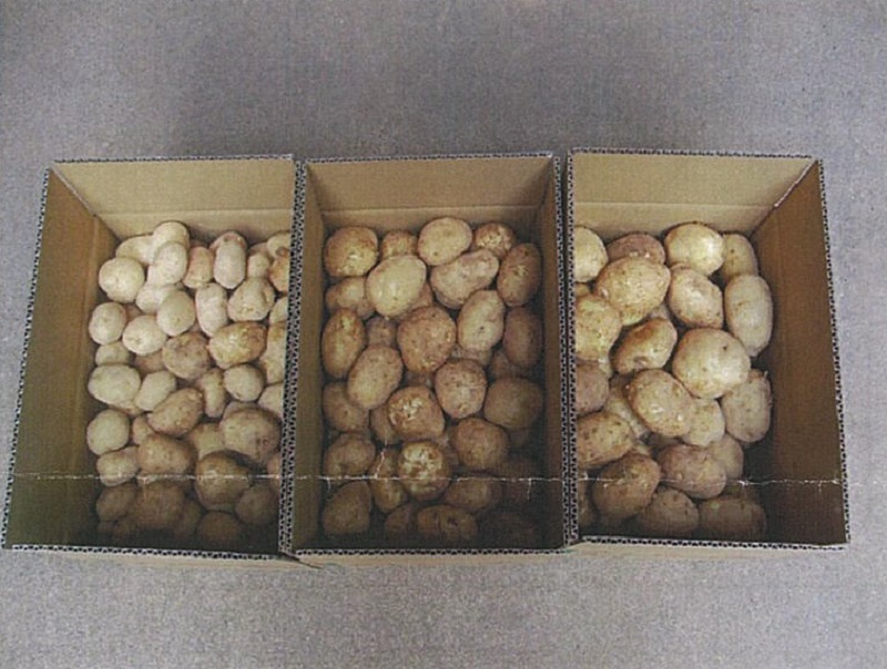 2枚目:品種「ニシユタカ」。 3枚目:品種「ピルカ」、左から2L、L、Mサイズ。 | ||||||