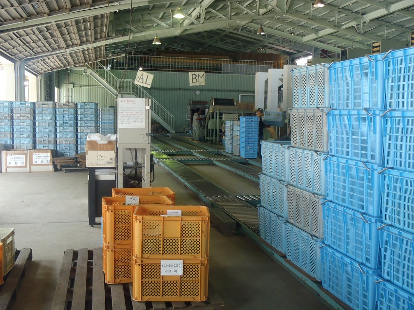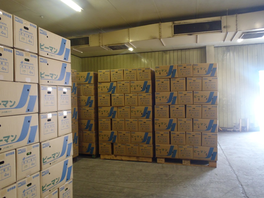 病害虫の発生も少なく、順調に生育している。 ・日中30℃を超える高温になる日もあり、尻腐れができているため、 ほ場管理に注意している。 ・生産者は、午前10時までにコンテナに規格別に分けてJAに出荷、 JAの集荷場で袋詰め、袋詰めして冷蔵庫で保管し、翌日市場へ出荷される。 ・中上段:尻腐れがみられる。 ・下 段:JAの集荷場の様子。 | ||||||