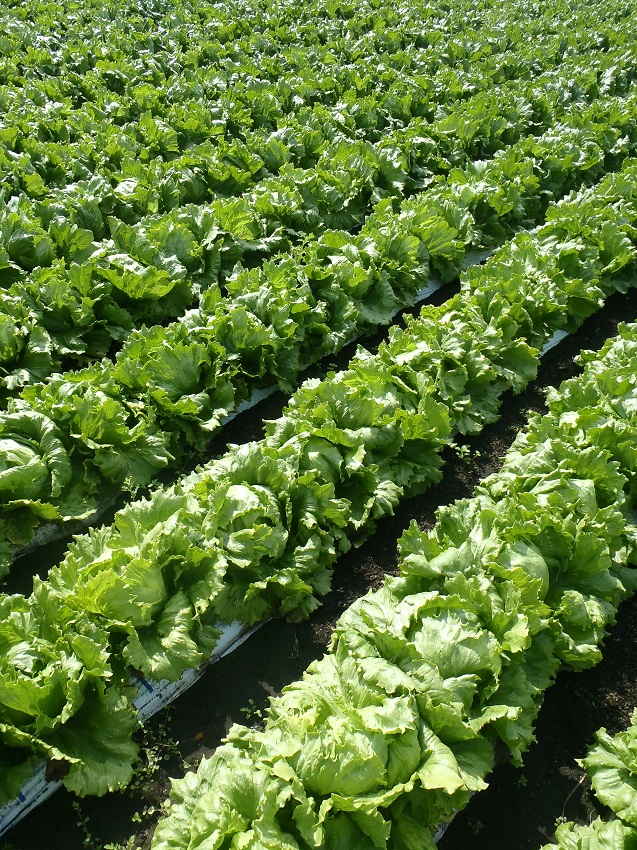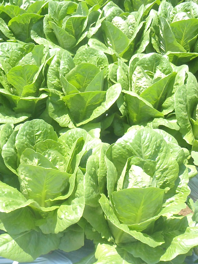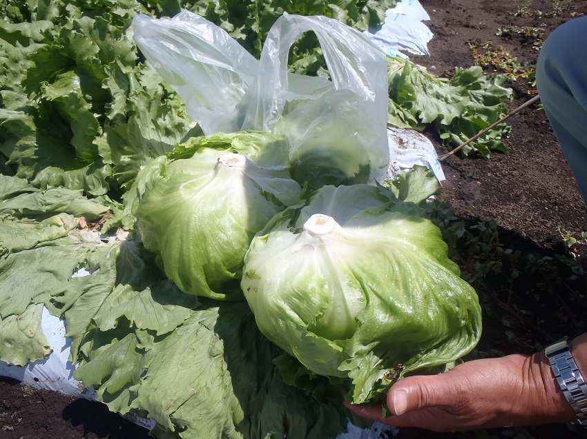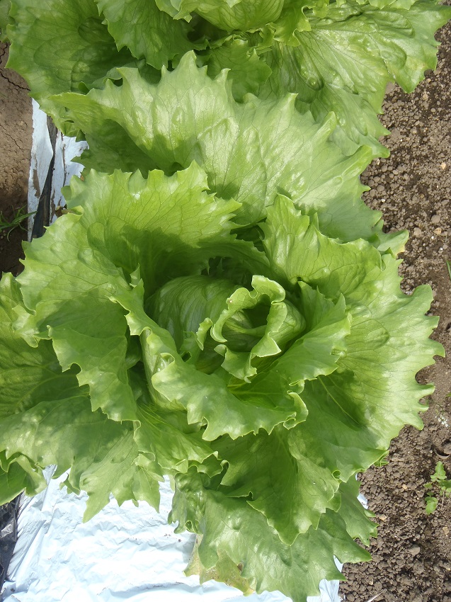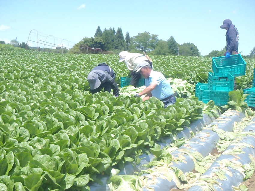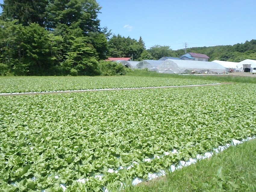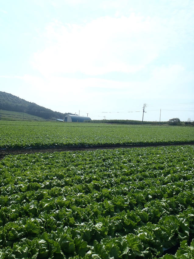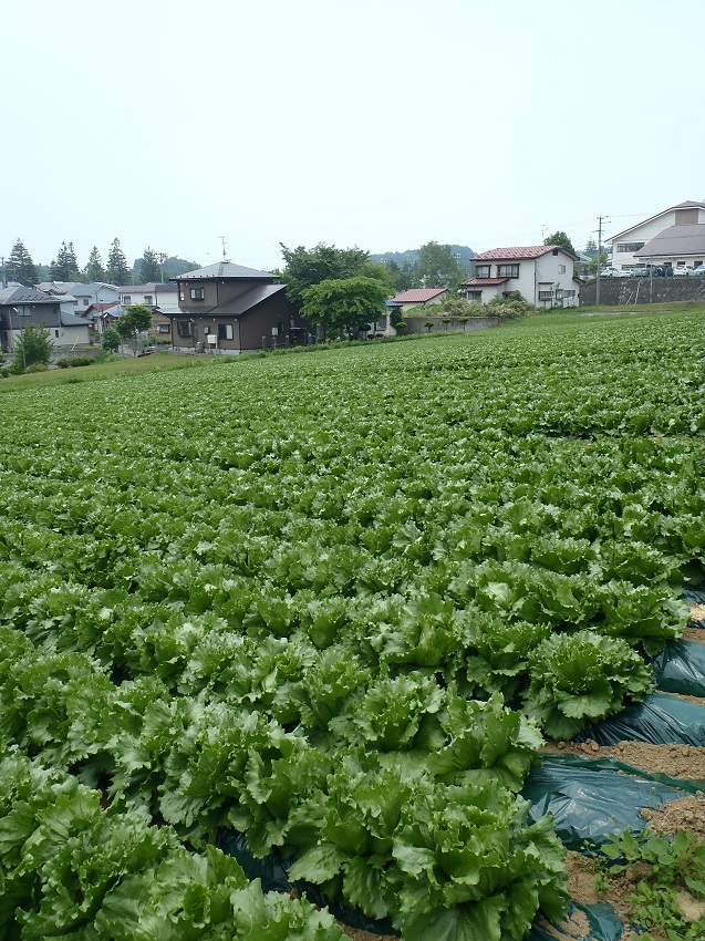 地温が上がらず生育状況に遅れが出ている。 ・6月下旬に梅雨入りしたが、降雨量はそれほど多くなく、適量。 ・10年ほど前からロメインレタスの生産も行っており、 関東を中心に出荷している。 ・結球・非結球とも徐々に出荷のピークを迎える。 ・3枚目:レタスアートは遅れ気味。 ・4枚目:ロメインレタスの収穫作業の様子。 | ||||||