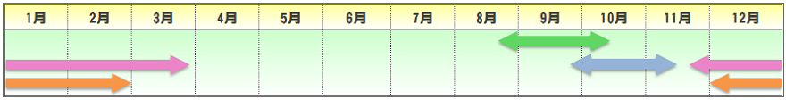 | 播種期 | 定植期 | 収穫期 | 出荷最盛期 |