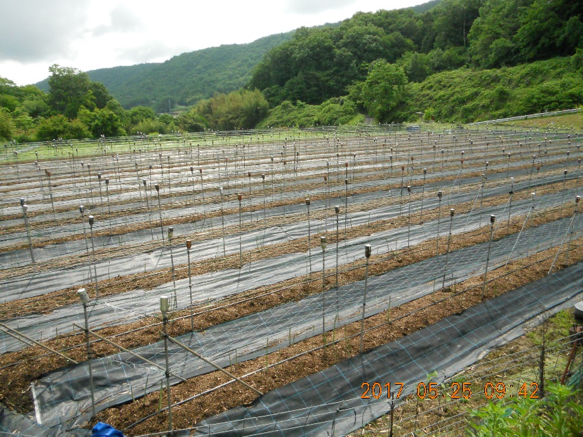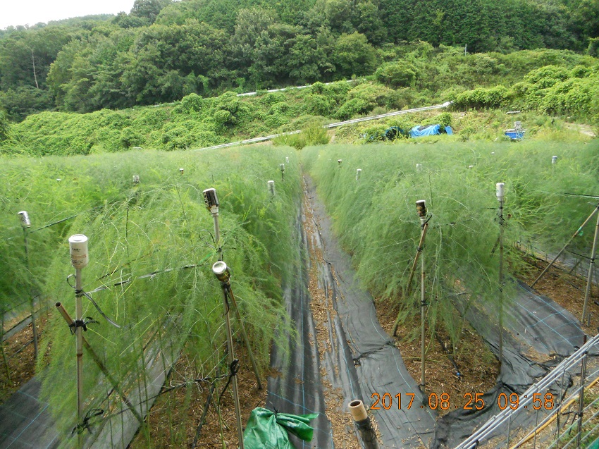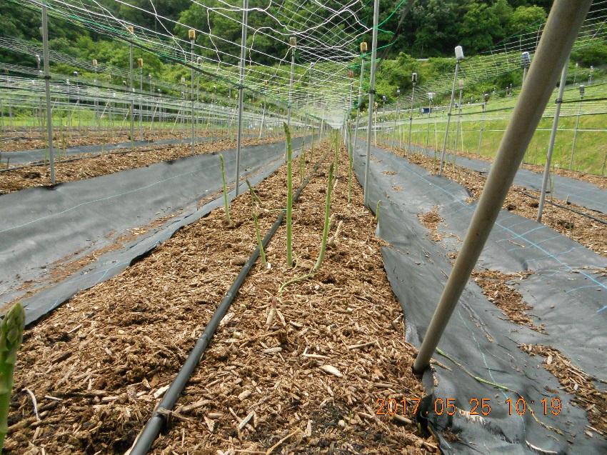 ・中段(2枚) :立茎中の個体。 ・下 段 :収穫後の株あと。 定植後10年以上のほ場のためばらついている。 | ||||||
