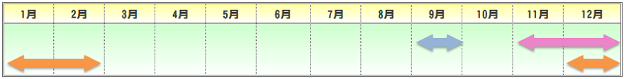 | 播種期 | 定植期 | 収穫期 | 出荷最盛期 |