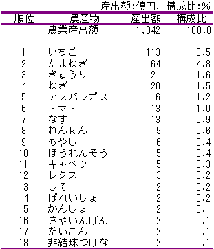 佐賀県における野菜の産出額の順位