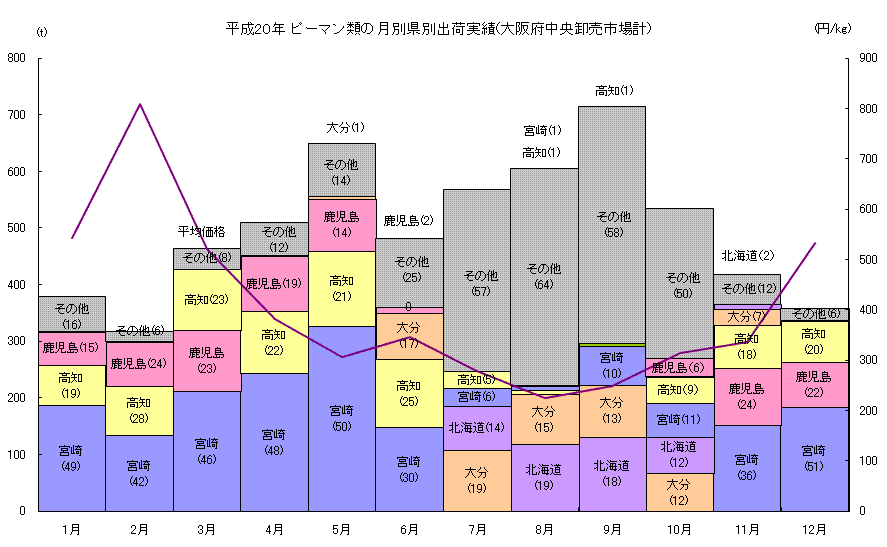 資料:平成20年大阪市、大阪府中央卸売市場年報より作成