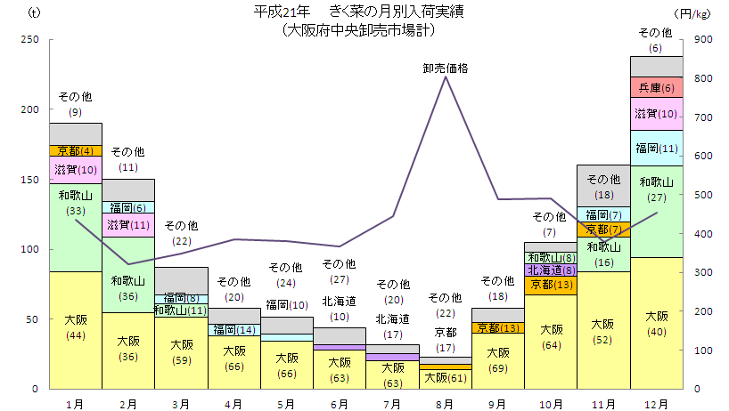 資料:平成21年東京都、大阪市、大阪府中央卸売年報
