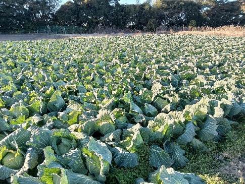 年明け収穫予定の圃場は、葉や株の大きさは例年並み~それ以上確保できている。葉の枚数が令和4、5年度と比べると2、3枚程度少ない。