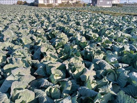 年内収穫予定の圃場は、結球の遅れが見られ、7~10日程度生育が遅れている。葉や株の大きさは例年並みに確保できていることから、収量は平年並みを見込む。