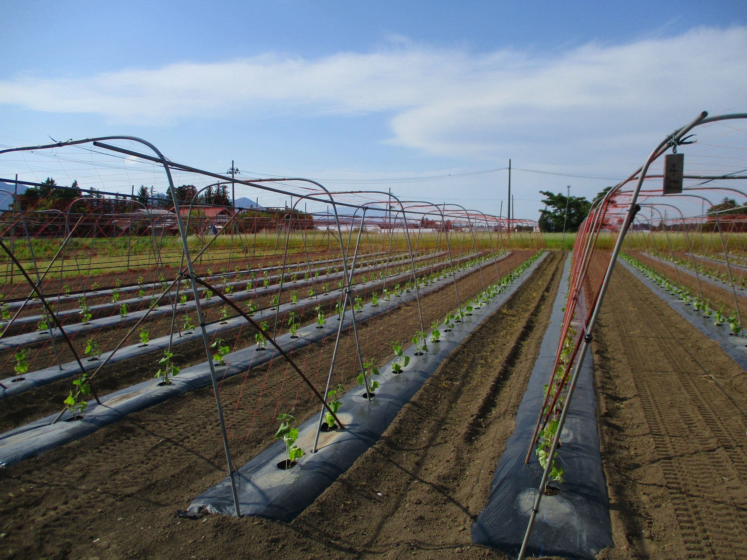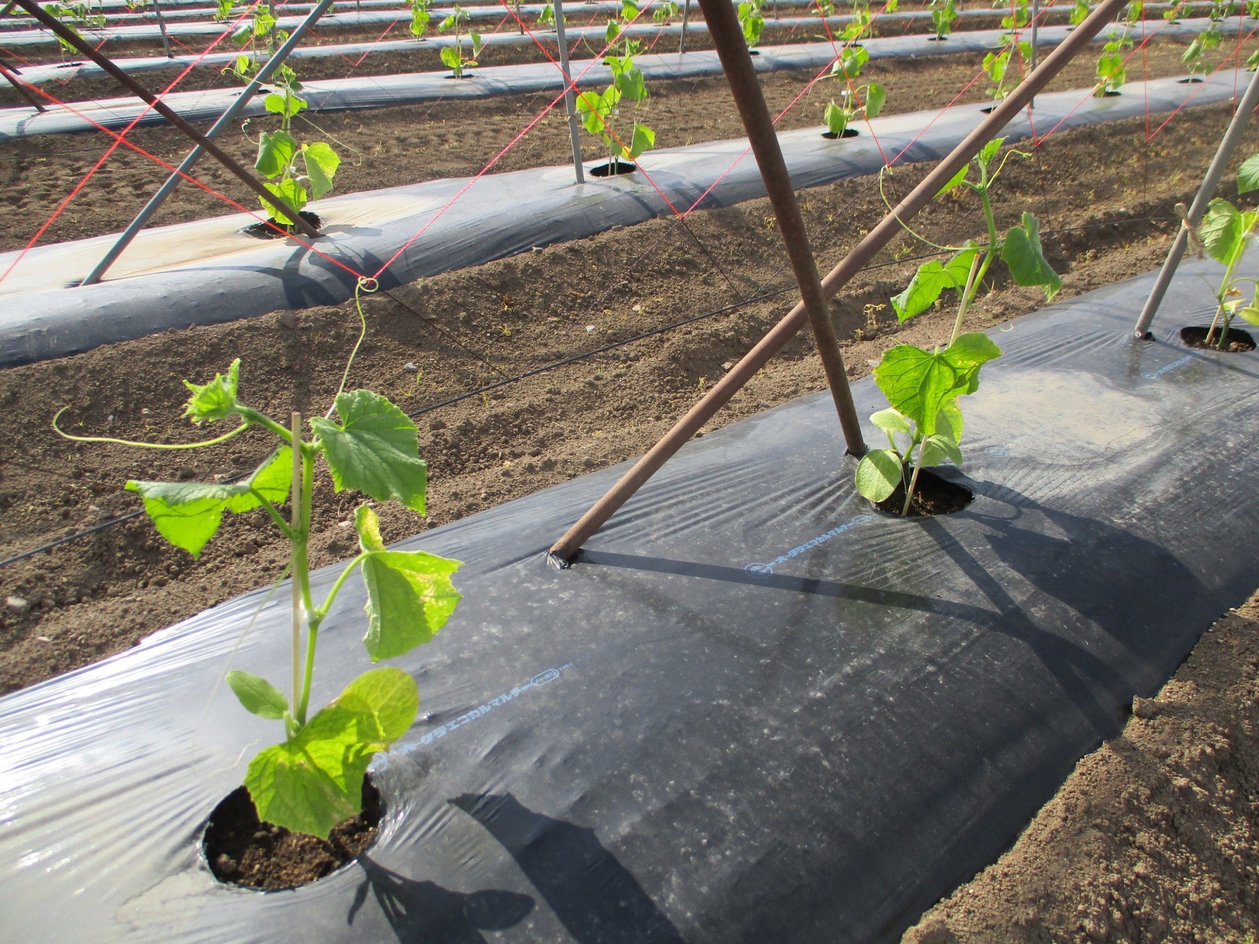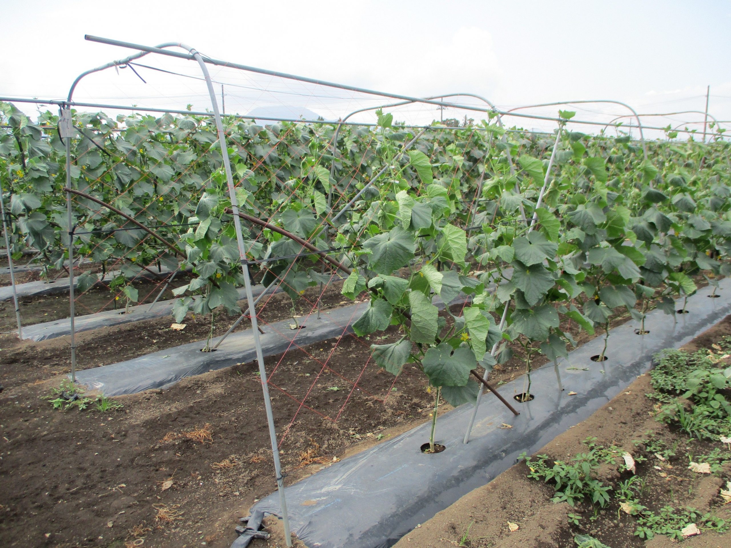 きゅうりは、暑さ以上に風に弱いため、圃場の周囲に防風ネットを設置して対策を行う予定。
