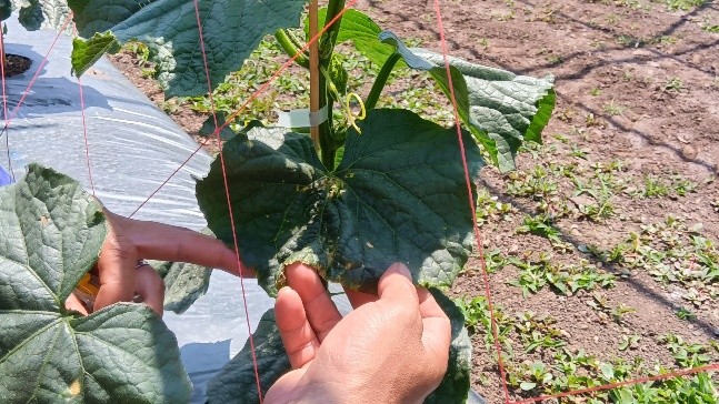 - 3枚目:つる枯れ部分と病気の葉を除去