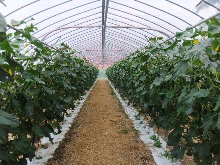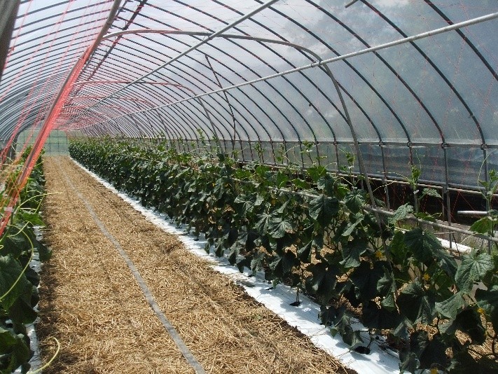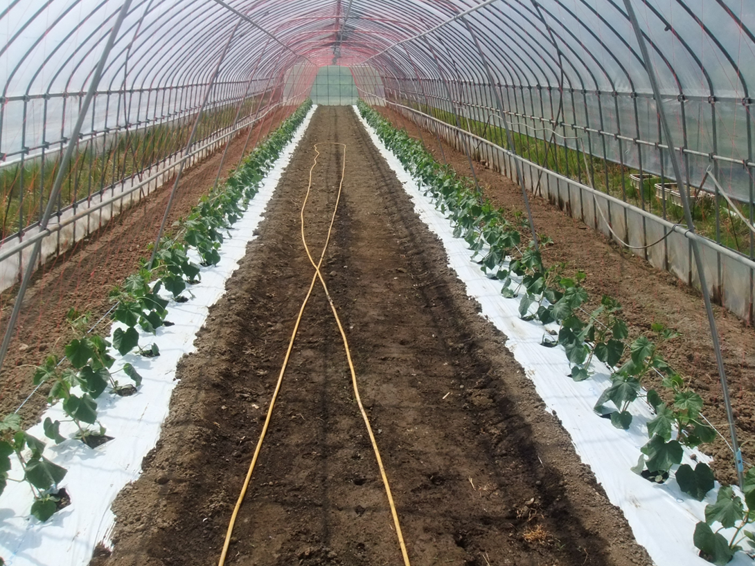 土壌の乾燥を防ぐため、稲わらやもみを撒き、灌水は1日2回行っている。