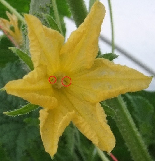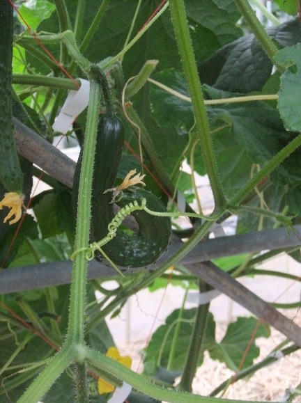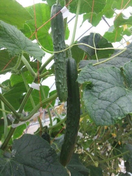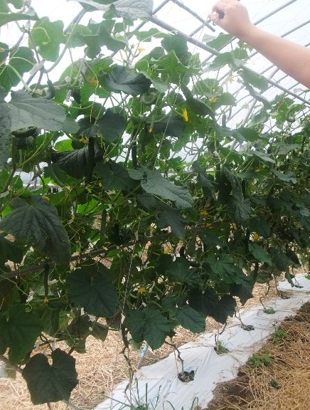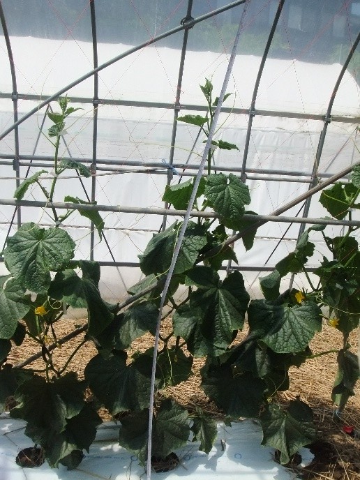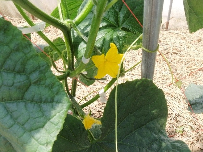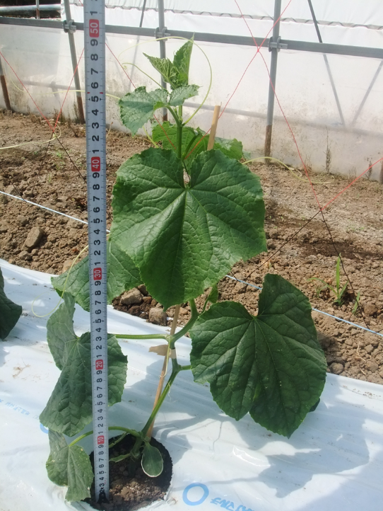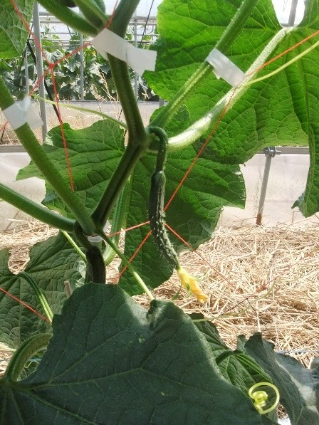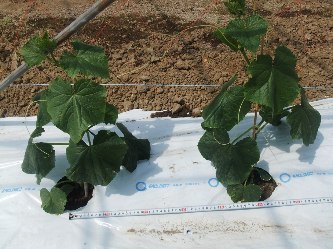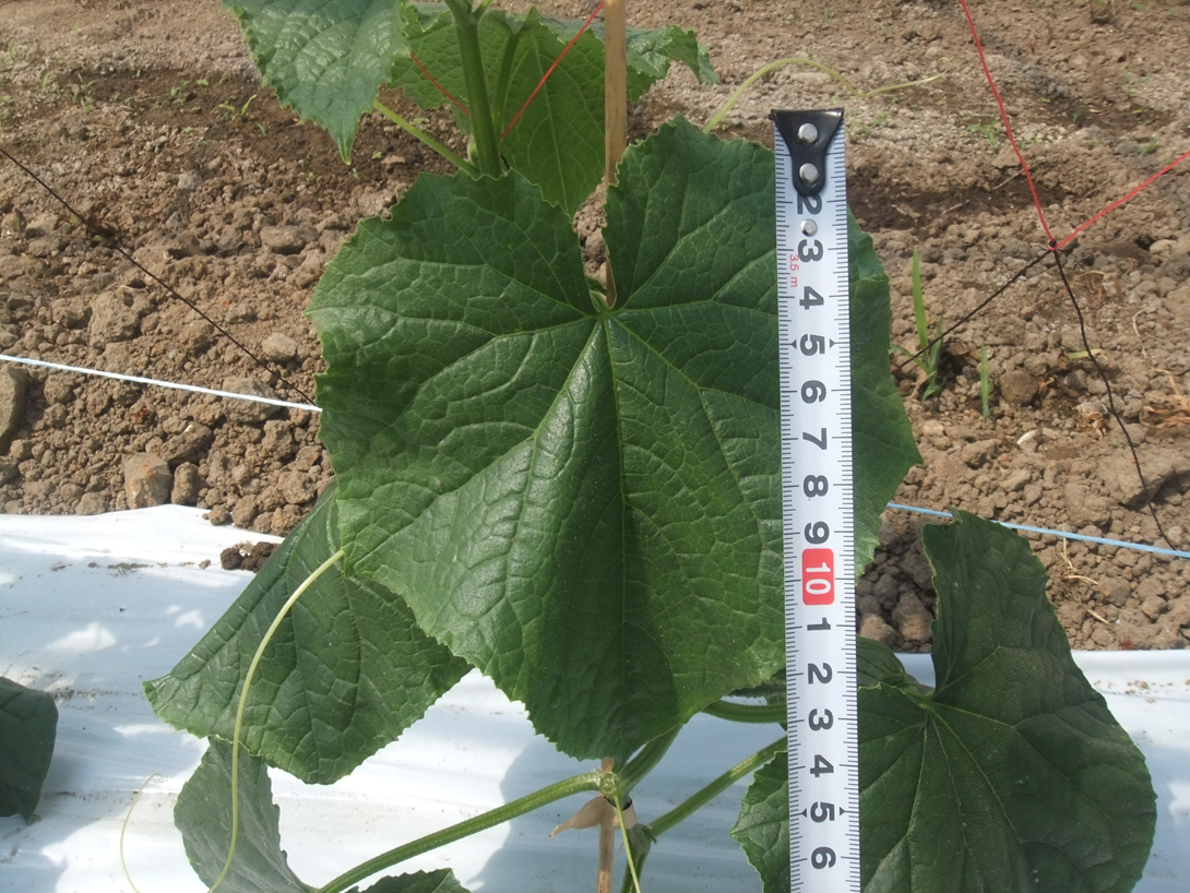 暑さの影響で曲がり果や葉の日焼けが見られる。また、花が多く咲いているため、実に養分が回っていない箇所も見られる。