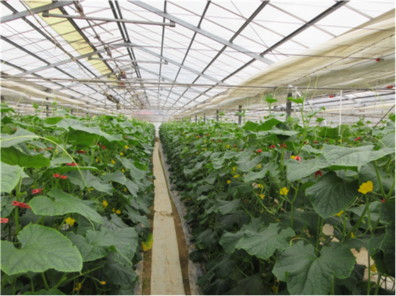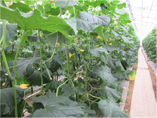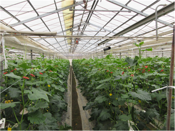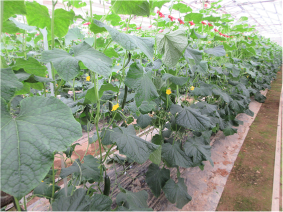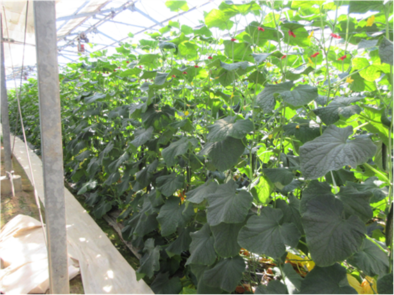 昨年11月から促成きゅうりの収穫・出荷を開始し、7月まで続く予定。