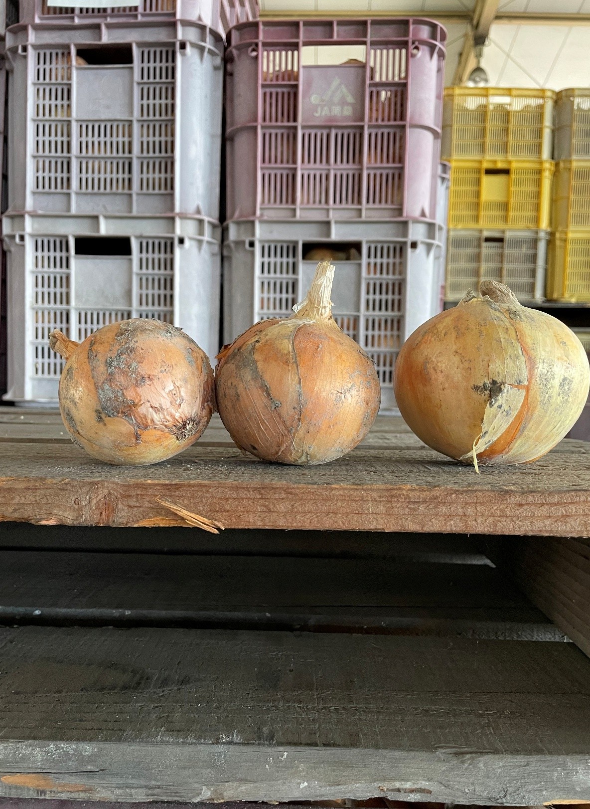 貯蔵期間中の高温のため、くさりが出てきている。