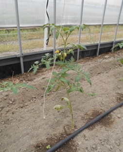 - 2枚目:4月18日定植、品種「桃太郎みなみ」、生育は順調2段目開花最盛期