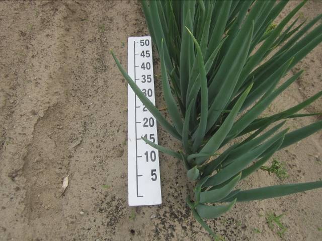 定植後は適度な雨もあるが、春先から寒暖差が大きく、加えて風の強い日が多いため飛砂による傷みもあり、生育は前年より2週間程度遅れている。