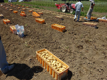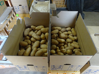 規格はL中心。収量はやや多めとなっているが、例年に比べて大きさにバラつきがある。品質は比較的安定しているが、高温の影響と思われる芽が出ているものが例年より多くみられる。