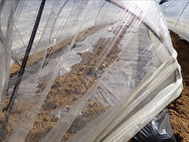 - 3枚目:透明マルチ栽培、品種は男爵、5月下旬から収穫予定